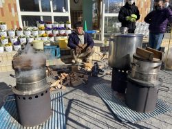 寒い一日でしたが、寒さと青空とかまどの煙ともち米の炊き上がった匂い…餅つきの思い出と共にこども達の心に残るのではないでしょうか。