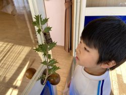 玄関やホールの入り口にかけてある柊の小枝と鰯の頭を見つめては匂いを嗅いで、『はぁーいい匂い♥』と言うところはさすが!焼津っ子です。『鬼はこの匂いが嫌いなんだって』と言うと『おいしそうな匂いなのに…』と不思議そうにしていました。
