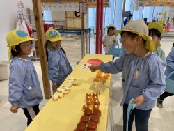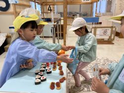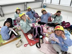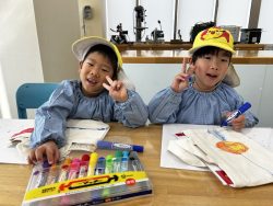 クリエイティブタウン『ま・あ・る』で、お店屋さんとお買い物体験をして遊んだり、手作りペイントのミニバックを作ったりして楽しみ、午後は秋葉山公園へ移動し、思い切り遊びました。クラスの友達だけでなく、黄色帽みんなで楽しい時間を過ごすことができました。最後の遠足の楽しい思い出ができたかな?