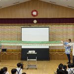 今日は、PTA主催の“マグロの解体ショー”がありました。鮮魚組合の方々が来てくださり、大きなミナミマグロを解体して見せてくださいました。 子ども達はその大きさにびっくり!ちょうど3歳くらいと聞いて、またまたびっくり!「ま …
